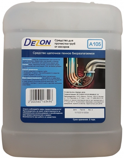 A105, 5,0 кг. Прочистка труб и засоров. Готовое средство.
