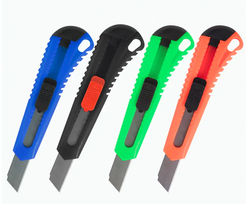 Инструмент прекрасно лежит в руке за счет специфической формы корпуса и рифленой поверхности. Его можно удобно зафиксировать, не беспокоясь о том, что нож соскользнет и отрежет лишнее или поранит кожу. Для того, чтобы лезвие не меняло свое положение, предусмотрен специальный фиксатор. С его помощью режущую часть можно выдвинуть настолько, насколько это необходимо. Лезвия подлежат замене, запасной комплект приобретается отдельно. Заменить режущую часть просто: достаточно снять верхнюю заглушку и вытащить затупившийся или поломанный элемент. Если кончик лезвия затупился, его можно отломить по специальной контрольной линии. Сделать это удастся даже не вынимая режущую поверхность из ножен, аккуратно надавив на край выдвинутого лезвия. Отличается повышенной