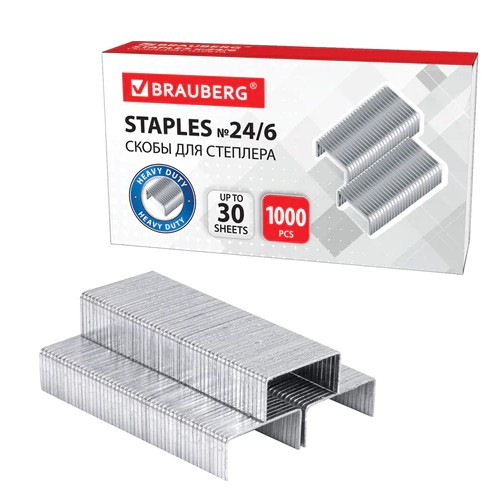 Стальные скобы серебристого цвета для степлера BRAUBERG размером № 10.